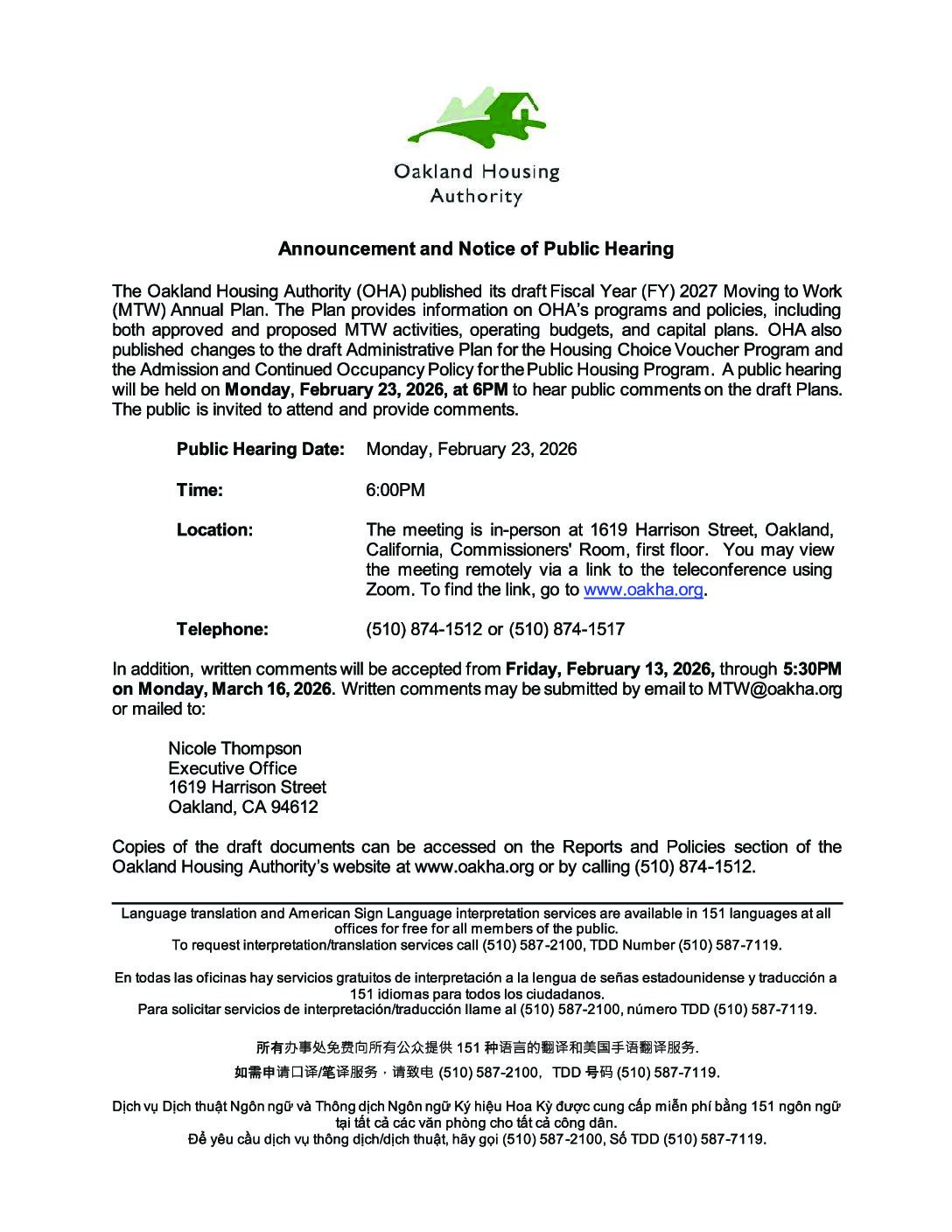 OHA is a Public Housing agency that operates under the authority of the U. S. Department of Housing and Urban Development (HUD) . We are governed by local, state and federal laws, rules and regulations. As such, we post our plans and reports in compliance with our governing bodies. For more information please contact our Executive Office or download any of the reports listed below